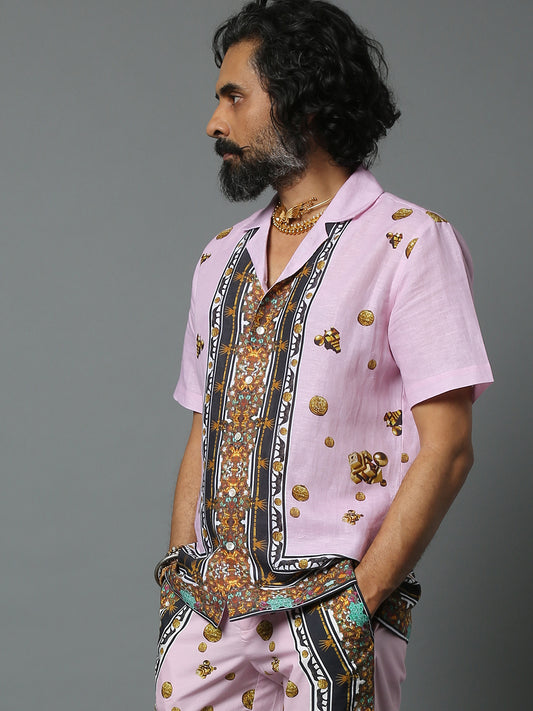 MURAL HAWAIAN SHIRT PINK POPLIN