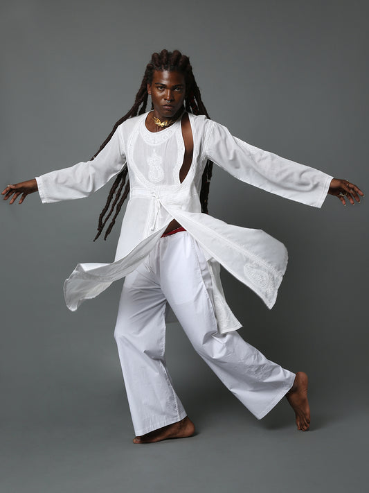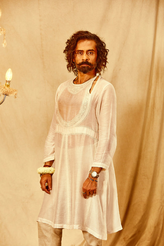ARSALAN CHIKAN ANGRAKHA KURTA WHITE