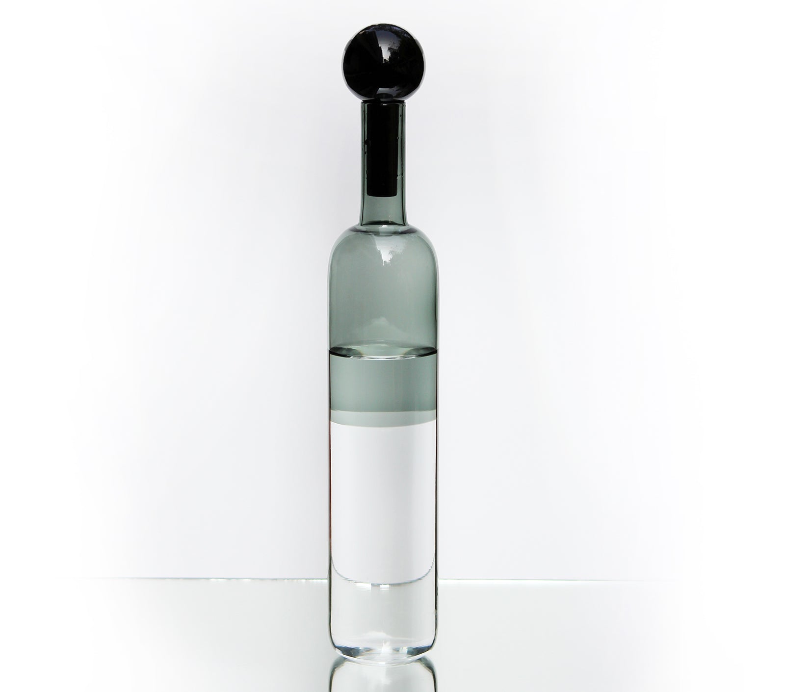 Borocillicate grey and amber incalmo glass bottle with borosillicate grey glass stopper