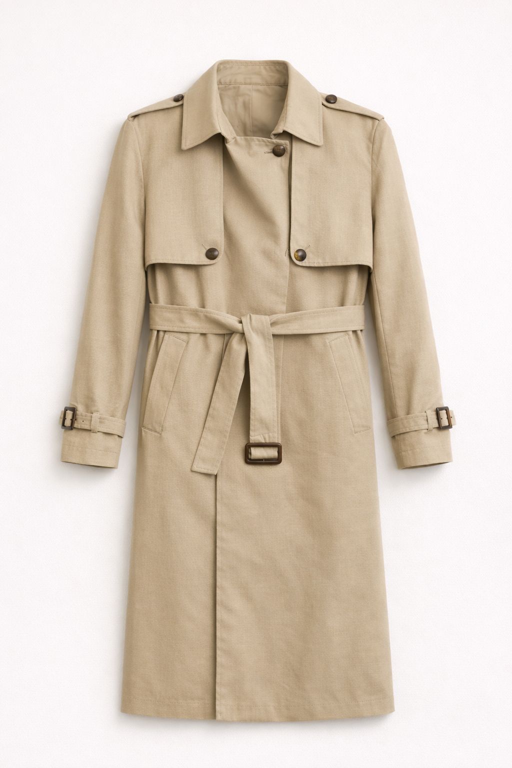 Swadeshi Linen Trench Coat : A handcrafted trench coat made in pure Indian linen, finished with tonal buttons, a belted waist and subtle Swadeshi detailing. Designed for the modern traveller who values intention, comfort and quiet confidence over display.